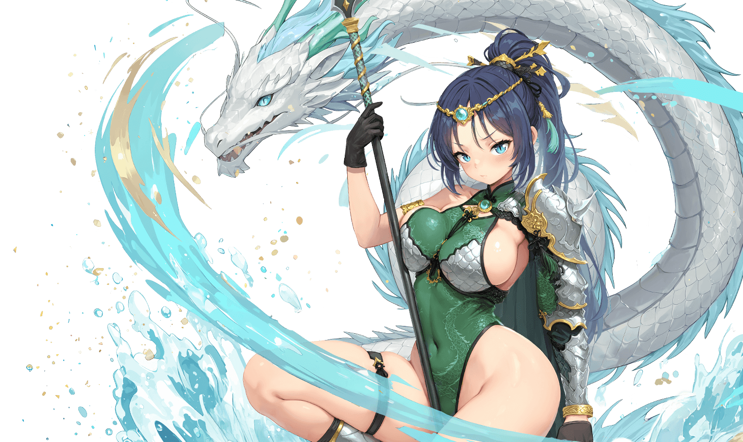 彼女は銀竜の鱗でできた鎧を身にまとい、白竜の幻影に乗り、竜槍を振るって戦場を駆け巡る。
