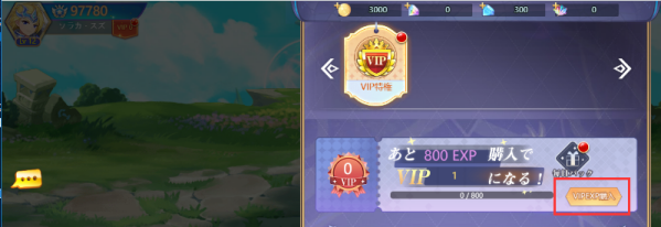 購入(課金)で入手することができます。VIP EXPを入手するとVIP レベルがアップし